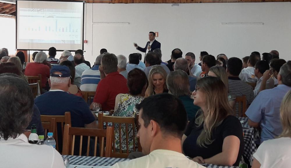 Na estreia das reuniões-almoço do Sindicato Rural de Camaquã, casa cheia, com mais de cem convidados, e uma palestra à altura que merecia o momento. Durante uma 1h20min de encontro, o economista-chefe do Sistema Farsul, Antônio da Luz, apresentou evidências históricas e contemporâneas que originam as razões de o Brasil hoje não estar reinando entre as grandes nações desenvolvidas, analisou as conjunturas atuais e elencou as mais urgentes medidas para o país retomar o crescimento.